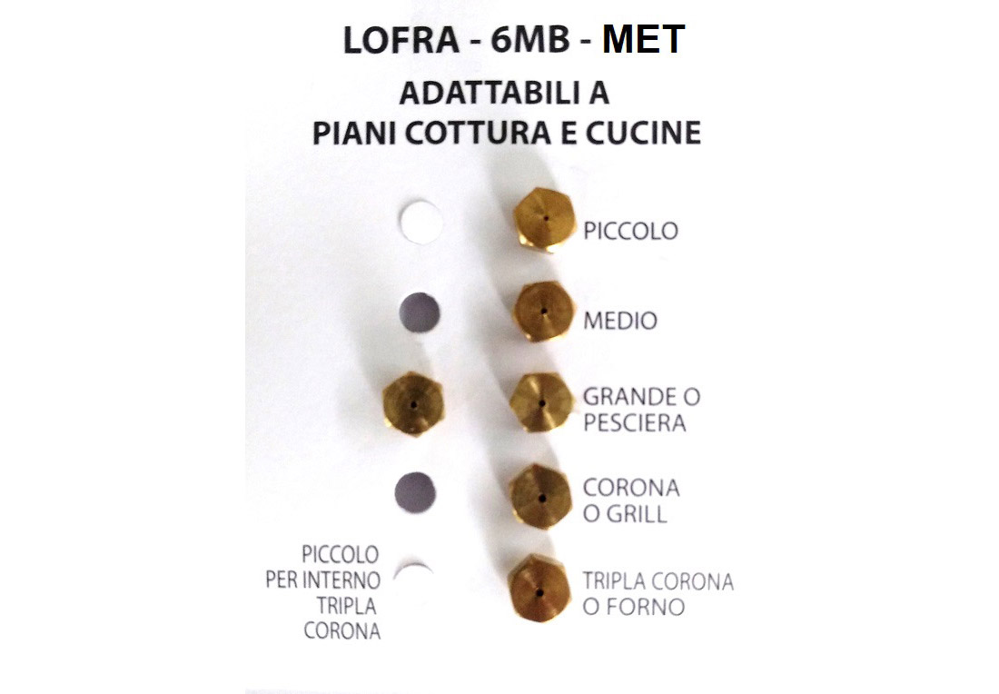 Ricambio compatibile: INIETTORI CONF.6 UGELLI 6 MB MET LOFRA. Componente tecnico per manutenzione e sostituzione su apparecchi domestici.
