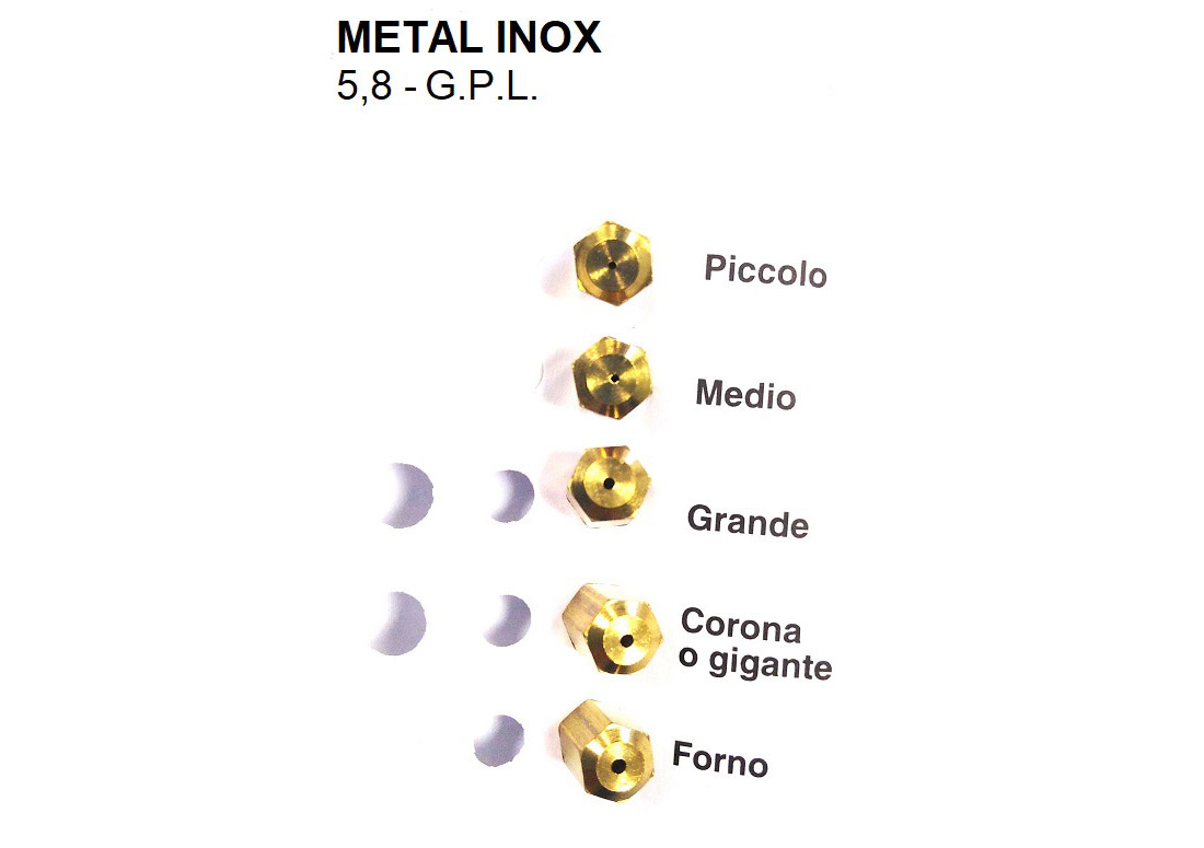 Ricambio compatibile: INIETTORI CONF. METAL INOX 5,8 GPL. Componente tecnico per manutenzione e sostituzione su apparecchi domestici.